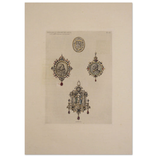 Decorator, Les Collections, Celebres, D'Oeuvres D'Art, Ensignes Et Pendant XVI Siecle, From the Collection De M la Baronne J de Rothschild, Plate 23, 1864