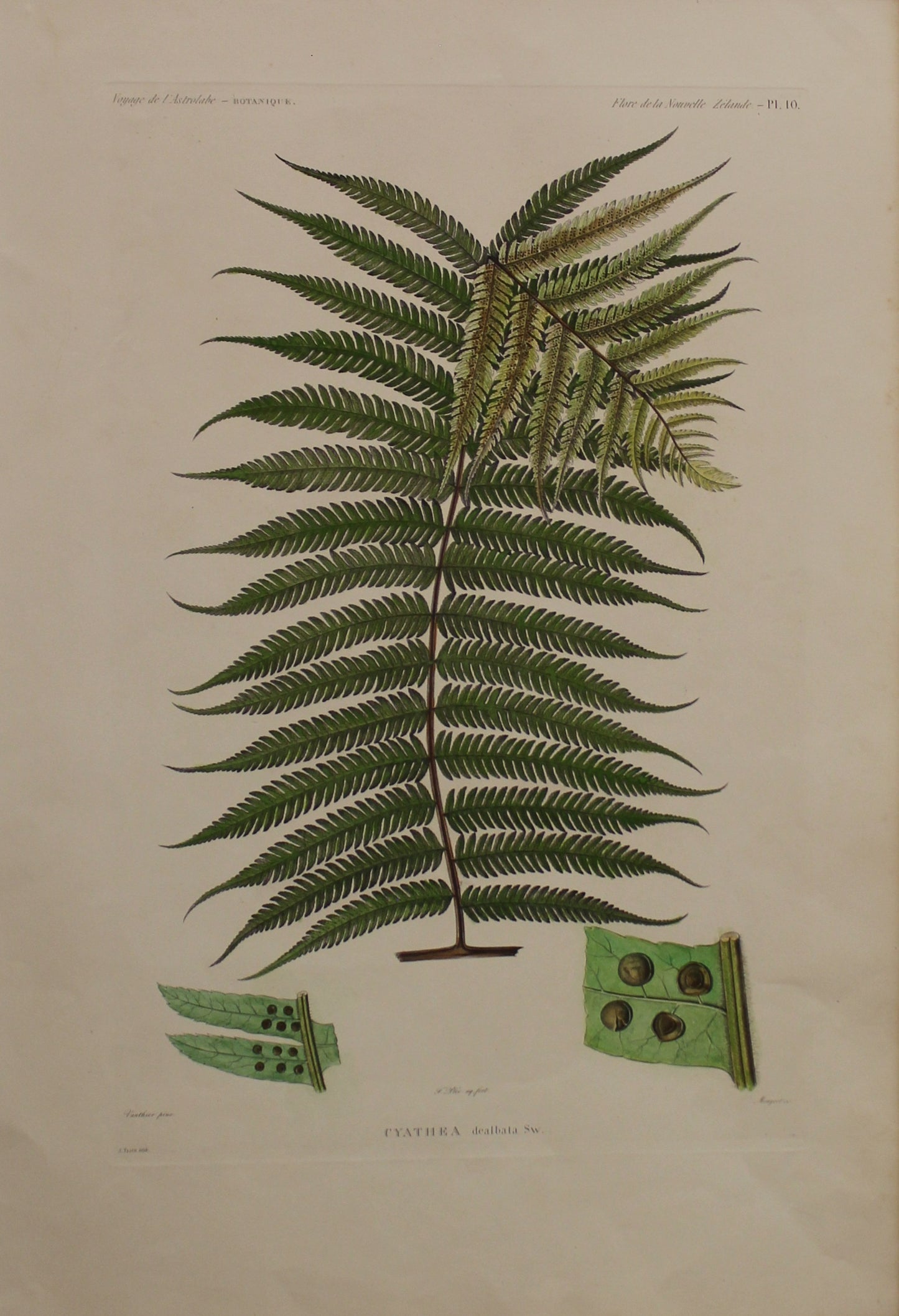 ASTROLABE: Botanical, Fern, Cyathea Dealbata, Flora de la Nouvelle Zelande, TASTU, J, Paris, 1826-1829 Hand Coloured Copperplate Engraving, NZ