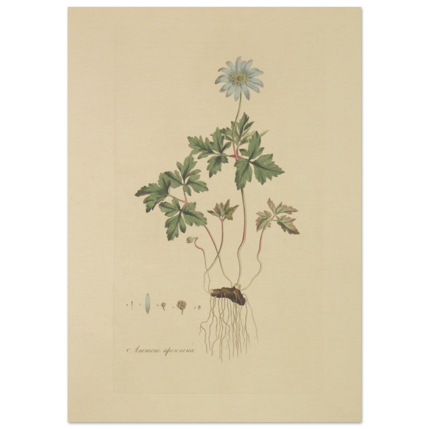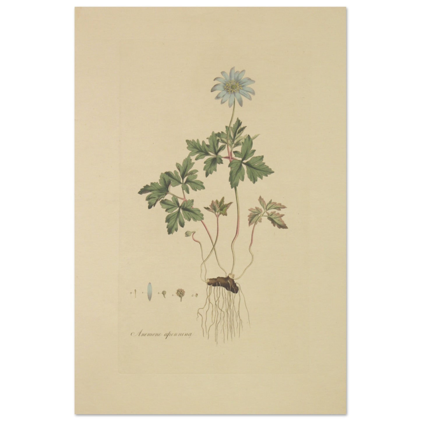 This is a reproduction of a rare William Curtis print called Botanical, Curtis William, Anemone Apennina, Flora Londinensis, from c1817.