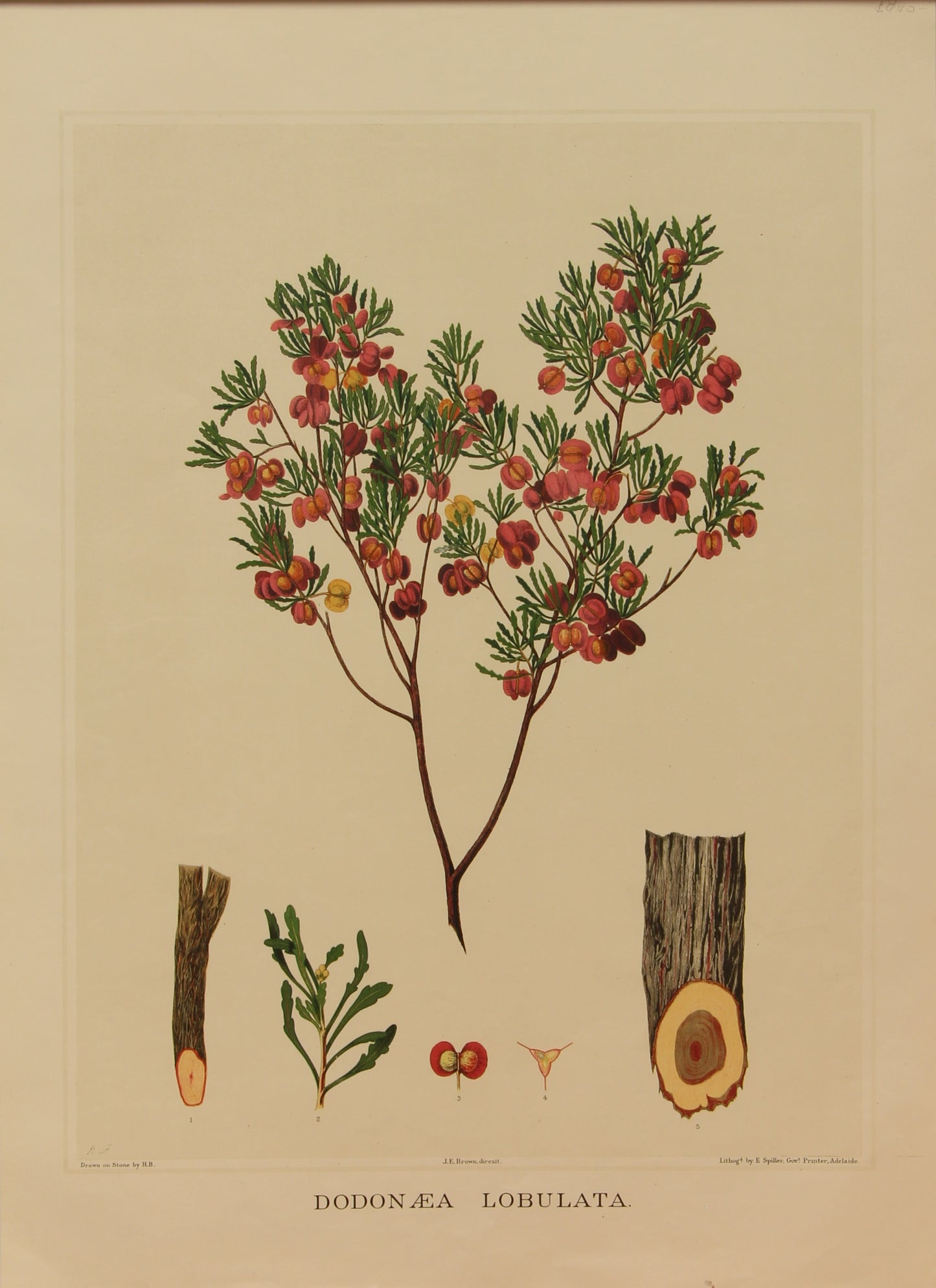 Botanical, Brown John Ednie, Dodonaea Lobulata, chromolithograph, 1882-1890