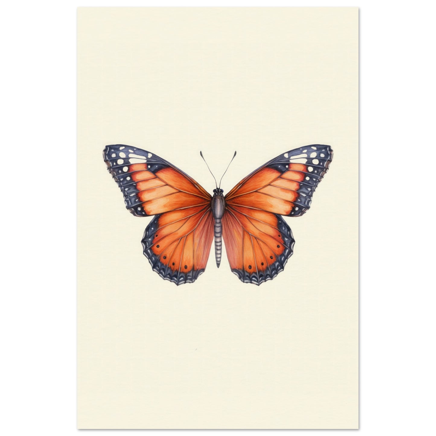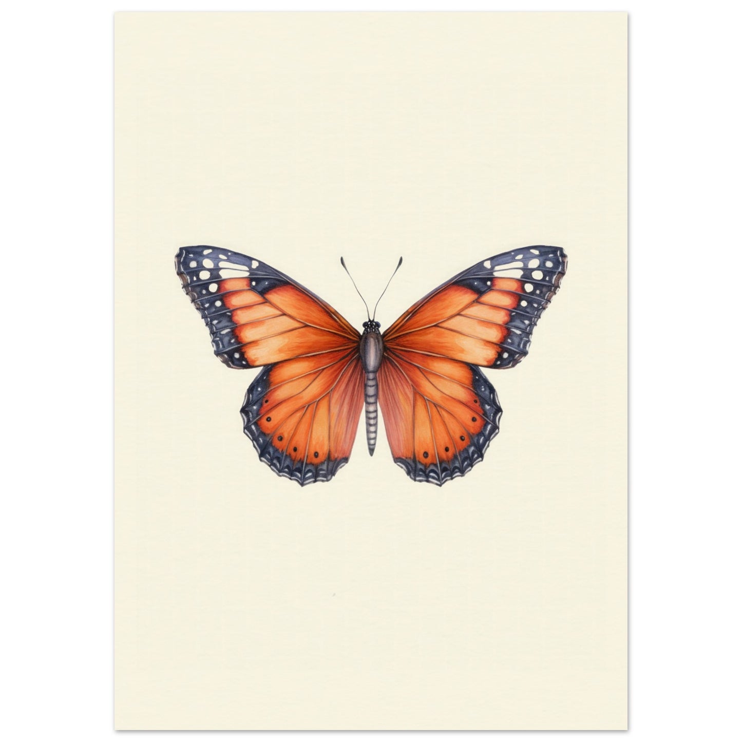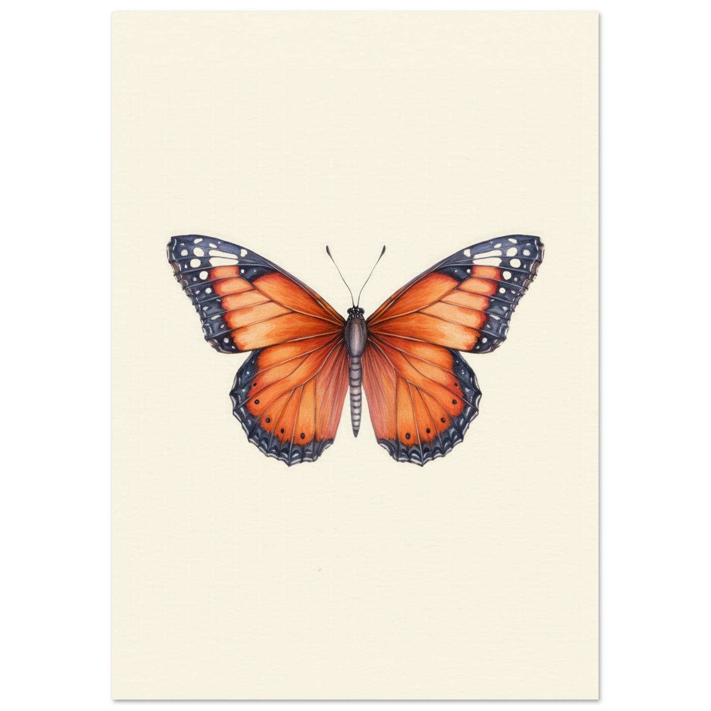This is a reproduction print of an Orange and Dark Blue Butterfly.