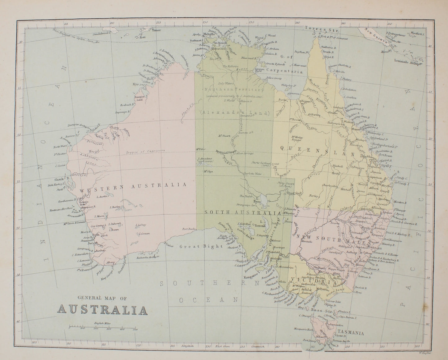 Map, Australia General Map of, Hughes W, Virtue and Co London, c1900