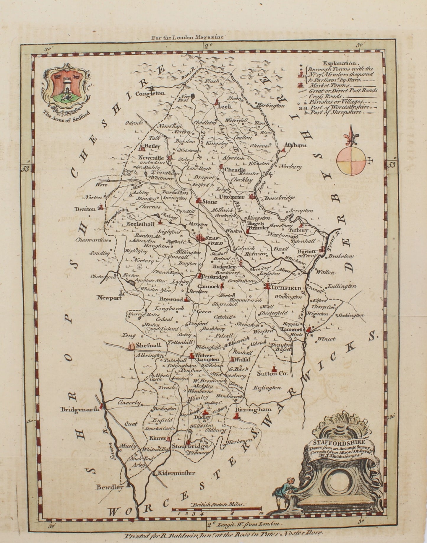 Map, Staffordshire, Kitchin, Thomas, The London Magazine, c1756